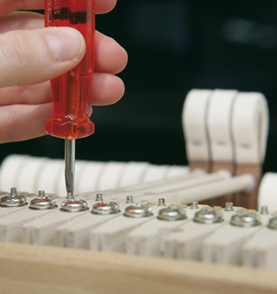 Intonieren: Bei der Intonation werden Farbe und Brillanz des Klanges durch die Bearbeitung der Hammerköpfe individuell gestaltet.